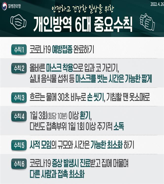 4. 개인방역 6대 수칙(질병관리청)