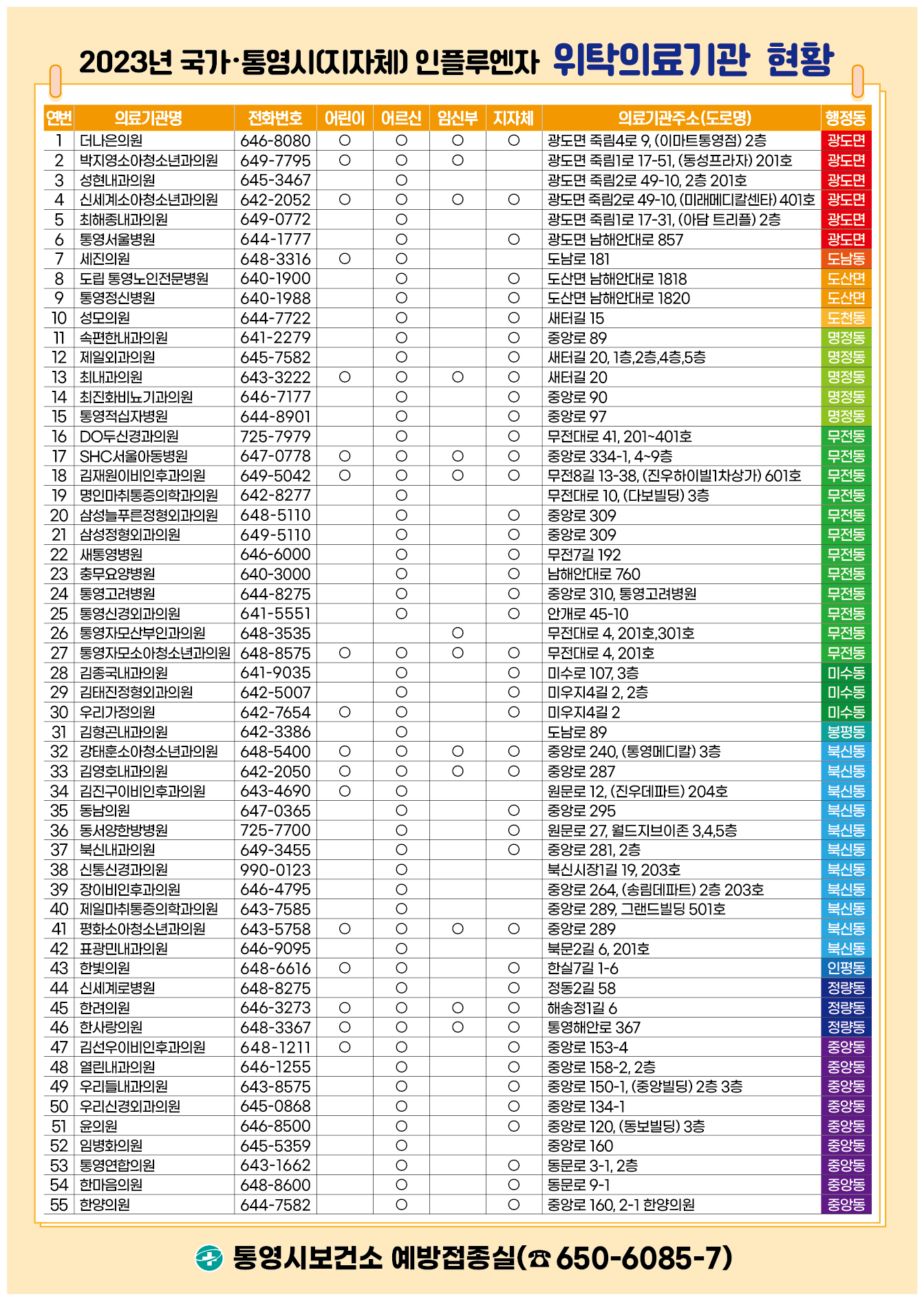 통영시 보건소 협조요청으로 국가예방접종사업관련 안내드립니다.